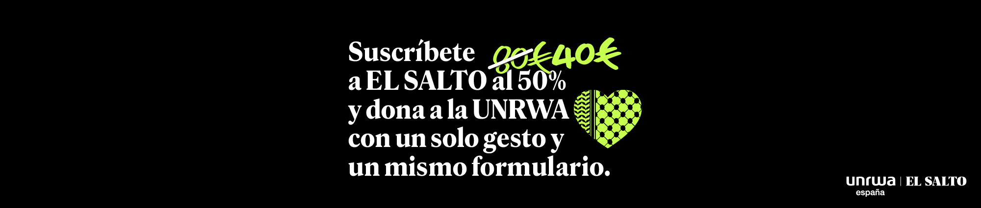 Desde el 23 de septiembre hasta el 31 de octubre puedes hacerte socio/a de El Salto con un 50% de descuento en nuestra suscripción Completa* y, en la siguiente pantalla, aportar una donación para la UNRWA.