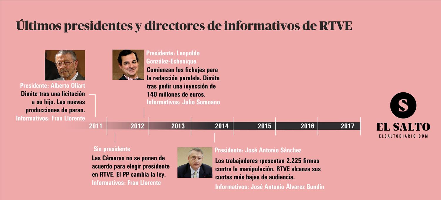 En julio de 2011 Alberto Oliart dimitió como presidente de RTVE, cargo al que había llegado tras un acuerdo alcanzado entre el Partido Popular y el PSOE. En noviembre, Mariano Rajoy conseguía la mayoría absoluta. Pasaron los meses y el Parlamento no era capaz de alcanzar un acuerdo que llegara a los dos tercios necesarios para nombrar al sucesor de Oliart. Así justificó el PP el cambio de ley: los siguientes presidentes de RTVE se elegirían por mayoría absoluta. La cifra de apoyos bajaba de 233 a 176 parlamentarios.