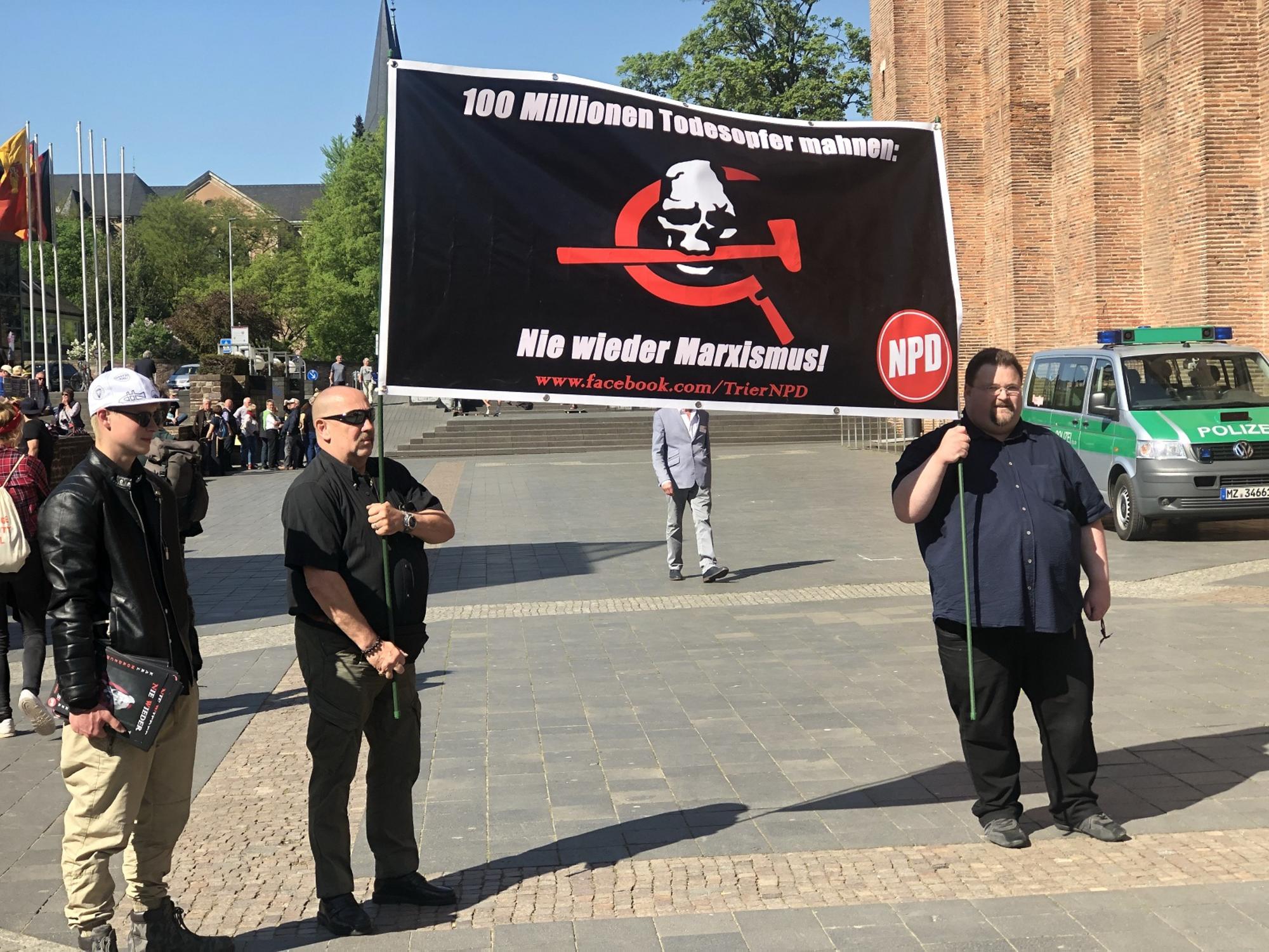 La misma opinión tenía al parecer un espontáneo que se puso a gritar, asegurando que había sido perseguido políticamente en la RDA y que, por ello, estaba en contra de honrar a Marx. El aniversario no ha estado exento de polémica en ese sentido, y en la ciudad tuvieron lugar furibundas discusiones entre los políticos locales y regionales para decidir si se aceptaba el regalo que China le ha hecho a Tréveris: una estatua de Marx en estilo del realismo socialista de cinco metros y medio de altura.