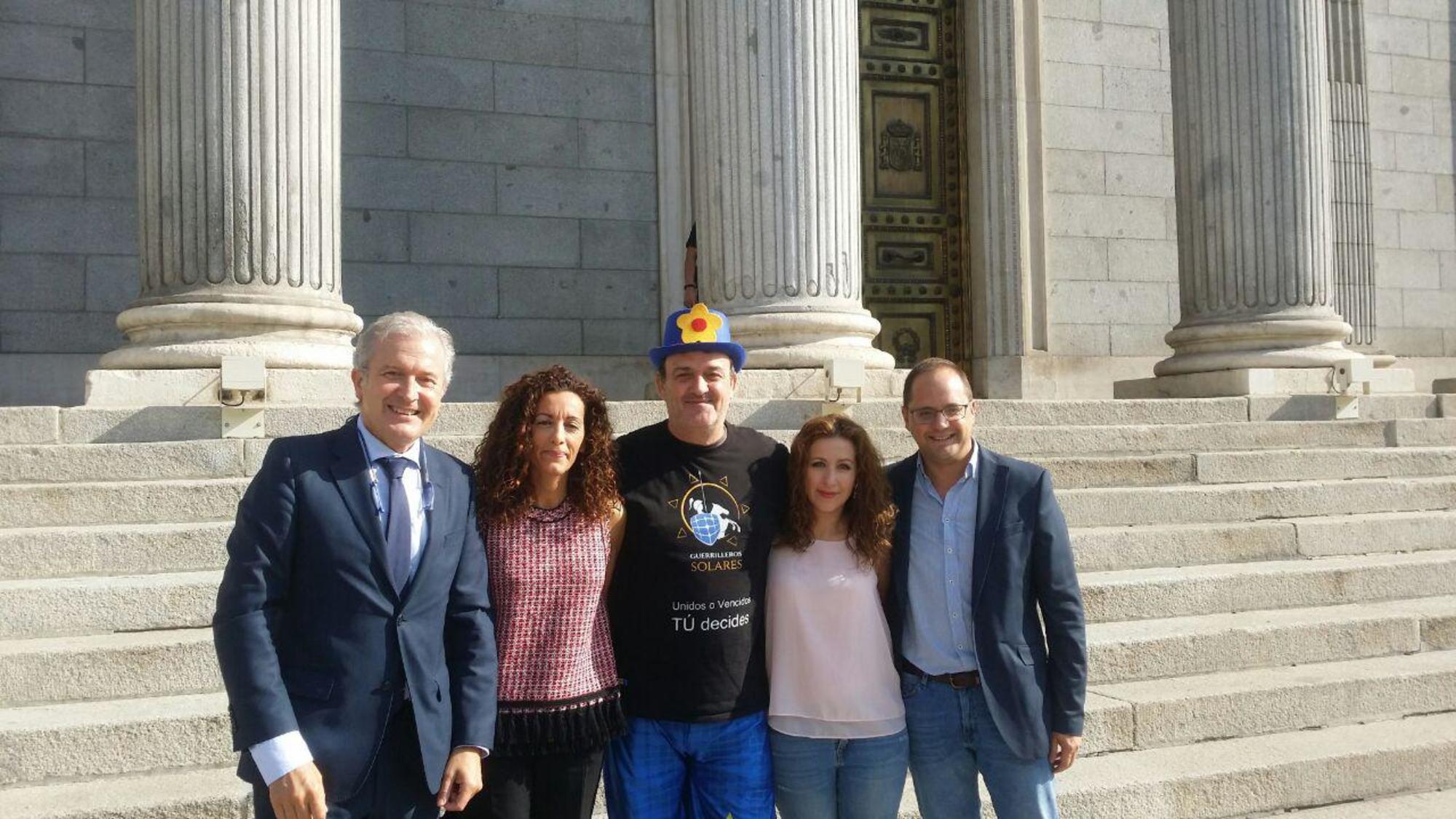 Los cuatro diputados por La Rioja se fotografiaron hace unos días junto al popular actor riojano, César Vea, que colgó la instantánea en sus redes sociales. El actor ha estado cuatro semanas en la puerta del Congreso visibilizando la ruina en la que le ha dejado la política española en cuanto a energías renovables.