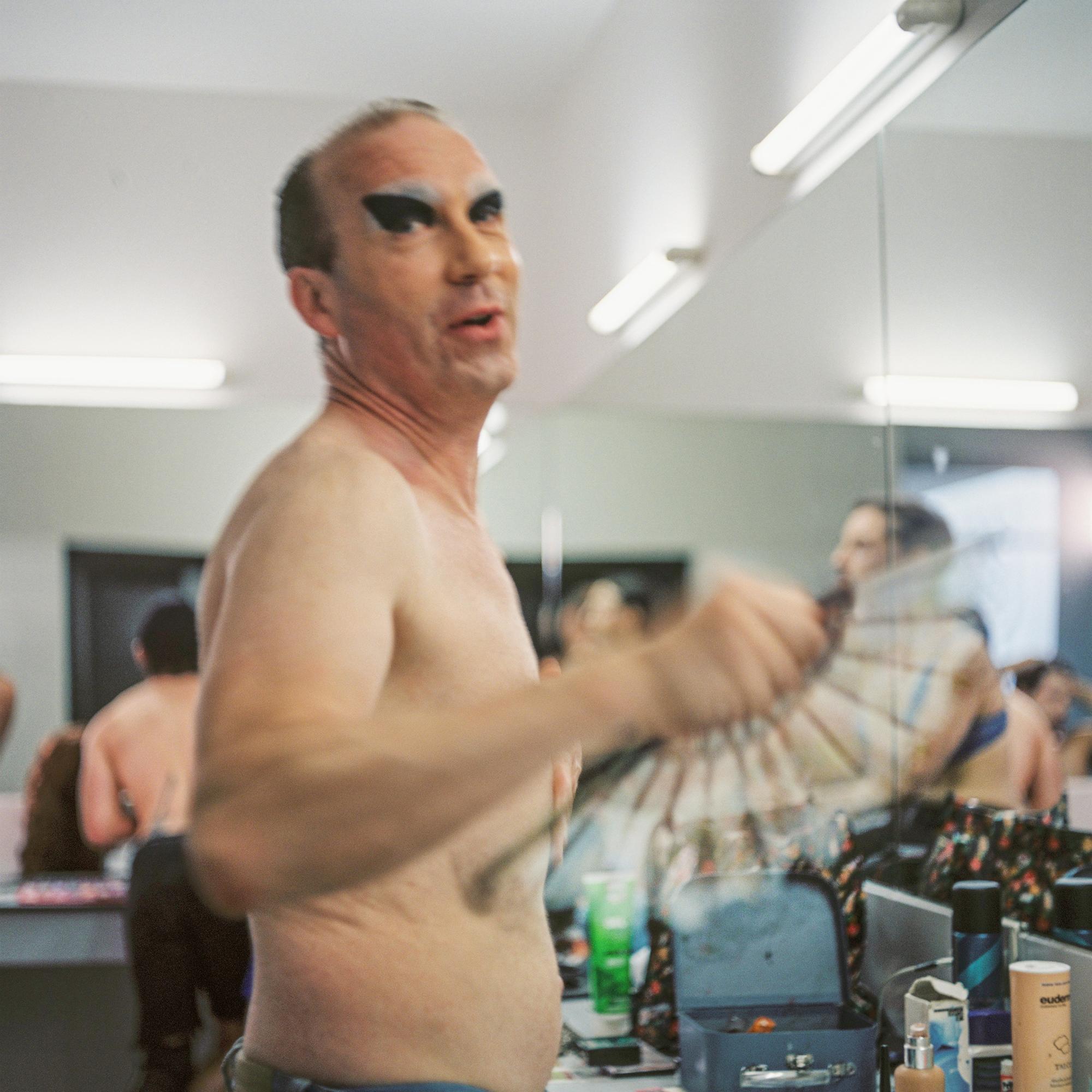 O que acontece enriba das súas táboas e fóra delas non é para menos. Leo Sangabriel, Roberto Casal, Carolin Sanders, Nico Elsker e Edu Domínguez, cuxos personaxes ilustran a imaxe desta reportaxe, prepáranse entre bambalinas. Purpurina nas barbas, barbas pintadas, masculinidades parodiadas e vestidos de gala. Tamén hai perrucas coloridas, maquillaxes sofisticadas e zapatos brillantes. “Marinita [Edu] anda mellor en tacóns do que andei eu nunca. É impresionante”, confesa ás portas do patio de butacas unha señora que fai varios lustros que vive xubilada. E en só unha frase, desde a súa subxectividade, unha espectadora anónima resume á perfección como, en algo máis dunha hora de función, un colectivo artístico consegue transgredir prexuízos e introducir identidades disidentes sen que ese sexa o fin en si mesmo.