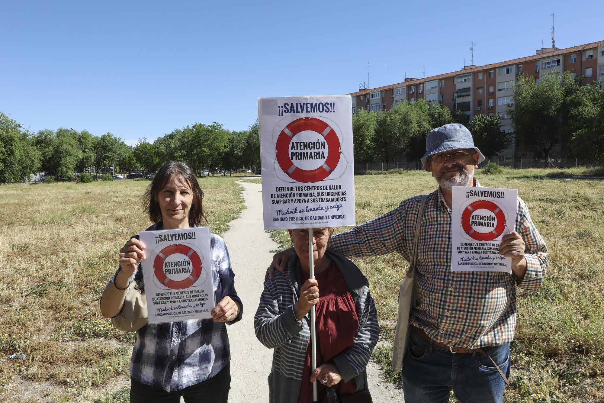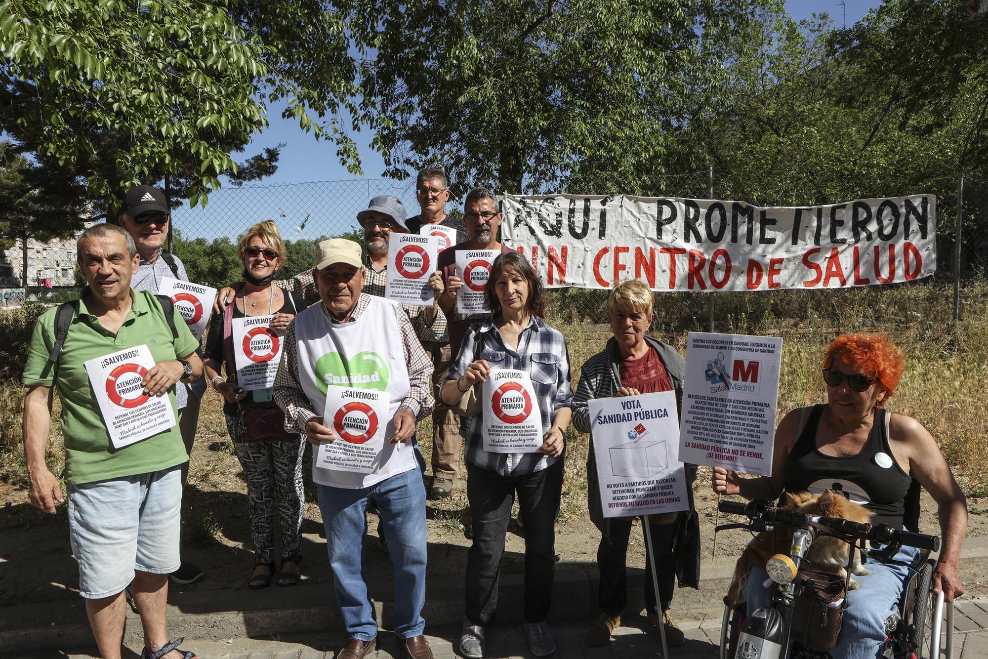 Juan Caraballo lleva cincuenta años viviendo en la zona. “Mientras esté el PP no confío en que aquí vayan a abrir nada”, denuncia. A su lado, Ricardo, también vecino en lucha, cuenta que hace un par de meses le dieron cita para cinco semanas después. “Y he tenido tres médicos de cabecera diferentes en un año”, añade. “Cuando pides cita por la aplicación te dicen directamente que no se puede pedir cita, hay que acudir al centro de salud”, se queja.