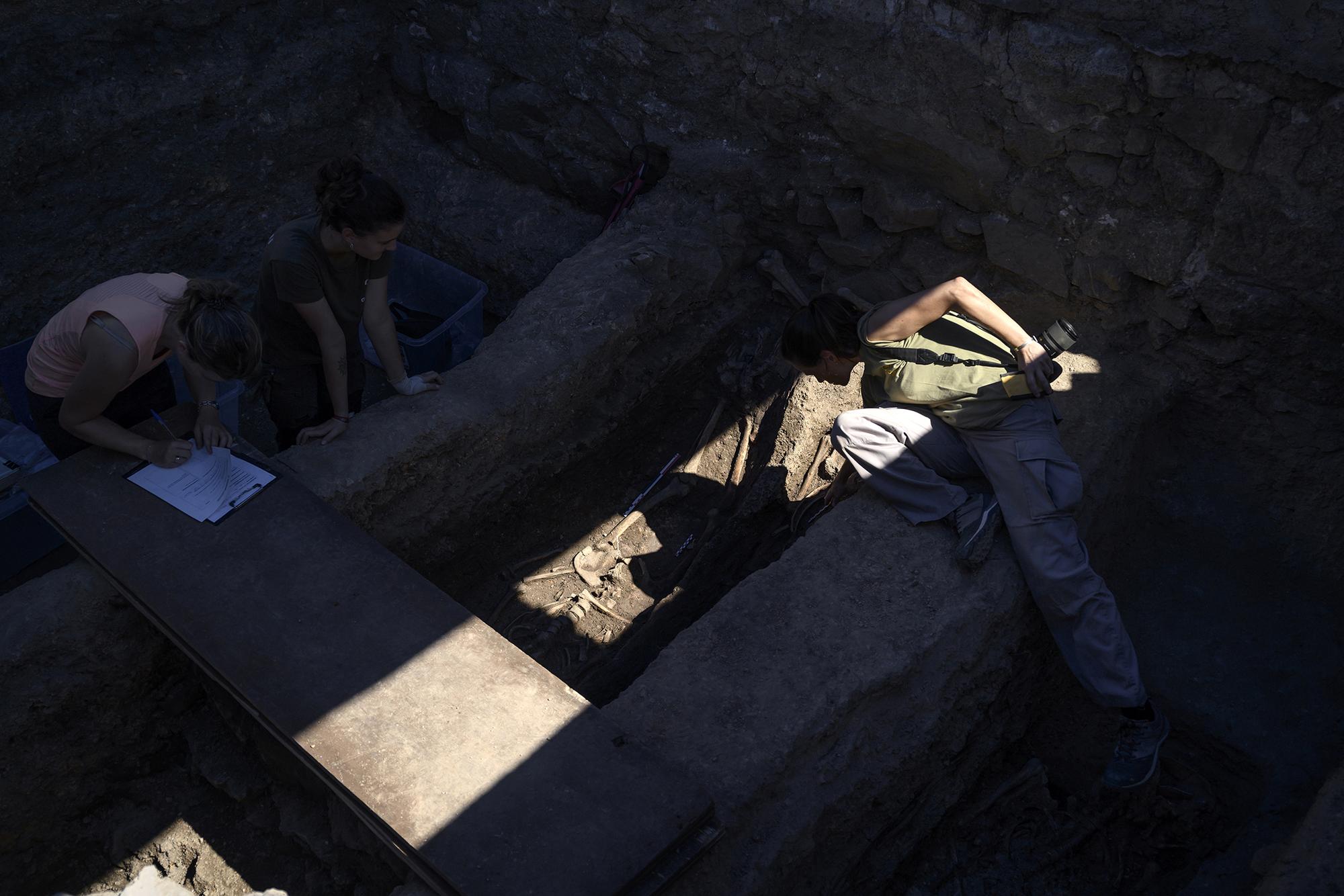El siguiente paso para la continuación de los trabajos es que el equipo de la Sociedad de Ciencias Aranzadi, que capitanea la excavación con la ayuda de profesionales del Equipo A de Arqueología, voluntarios y estudiantes, realice un proyecto. “Hay que pedir presupuesto al laboratorio de genética, hacer una valoración de tiempos y equipo, y presentarles un presupuesto, lo antes posible, para que ellos puedan hacer la tramitación”, indica Almudena García-Rubio, arqueóloga y antropóloga forense que dirige la excavación. La idea inicial es terminar la fosa en la que han estado trabajando, de la que solo han excavado la mitad por falta de tiempo y medios, y hacer sondeos de uno de los pasillos del cementerio conocido como El Paseo, donde se cree que hay también restos de represaliados. “Hay conocimiento de que algunos sentenciados confesaron y entonces se les permitió a las familias que fueran enterrados ahí, dentro del terreno católico del cementerio, porque el cementerio civil [donde se encuentra la fosa ya excavada] estaba entonces separado completamente”.
