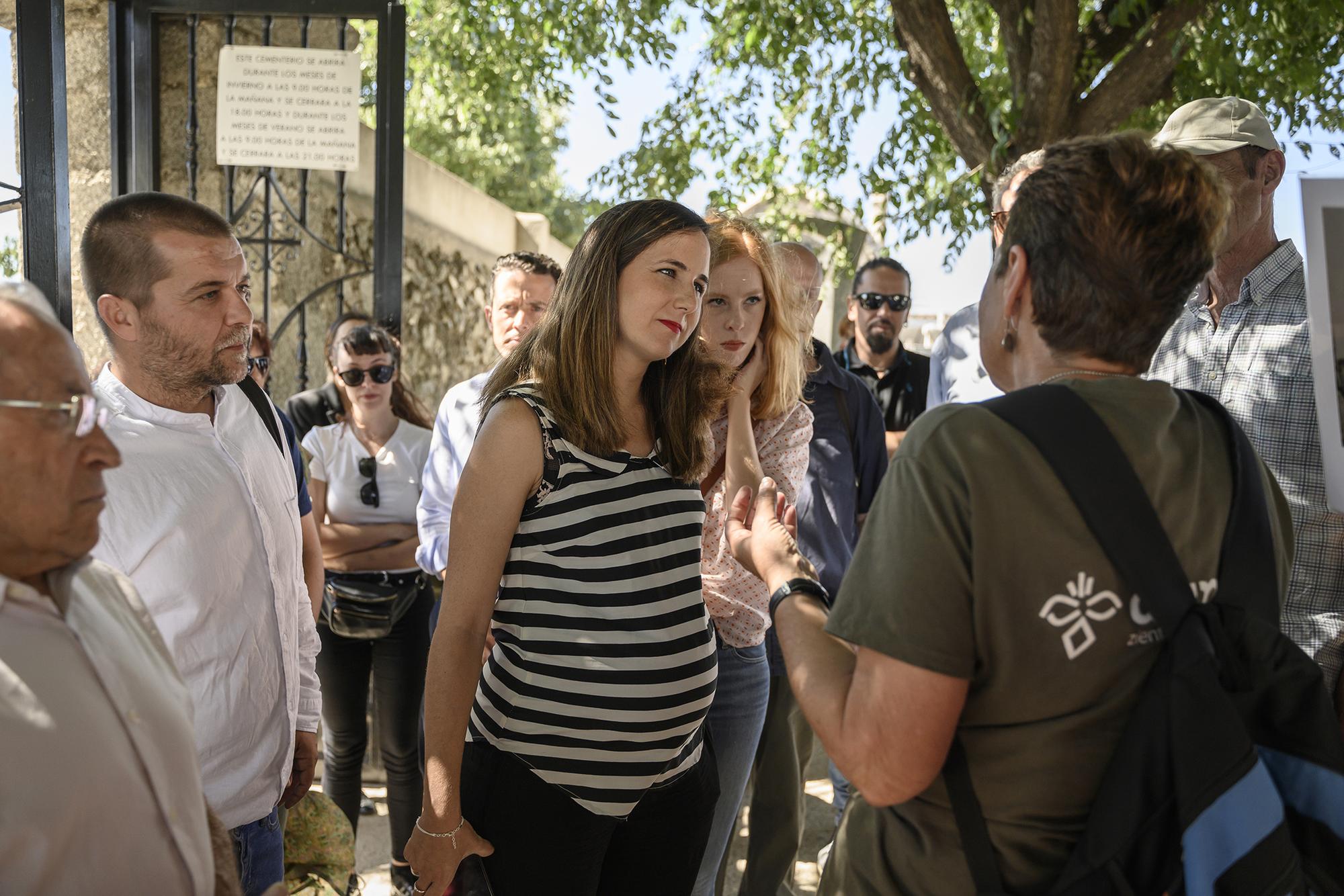 Un par de horas después, la secretaria general de Podemos y ministra de Derechos Sociales y Agenda 2030, Ione Belarra, acude al lugar para dar su apoyo. “Es importante mandar un mensaje muy claro: esta gente representa lo mejor de nuestro país, representa a la gente que defendió la legalidad democrática, la democracia y también la legalidad frente a la barbarie, el franquismo y el autoritarismo. Ya era hora de que las instituciones públicas, y especialmente el Gobierno de España, hiciera lo que estamos haciendo, que es apoyar la verdad, la justicia, la reparación y los actos de memoria como este”.