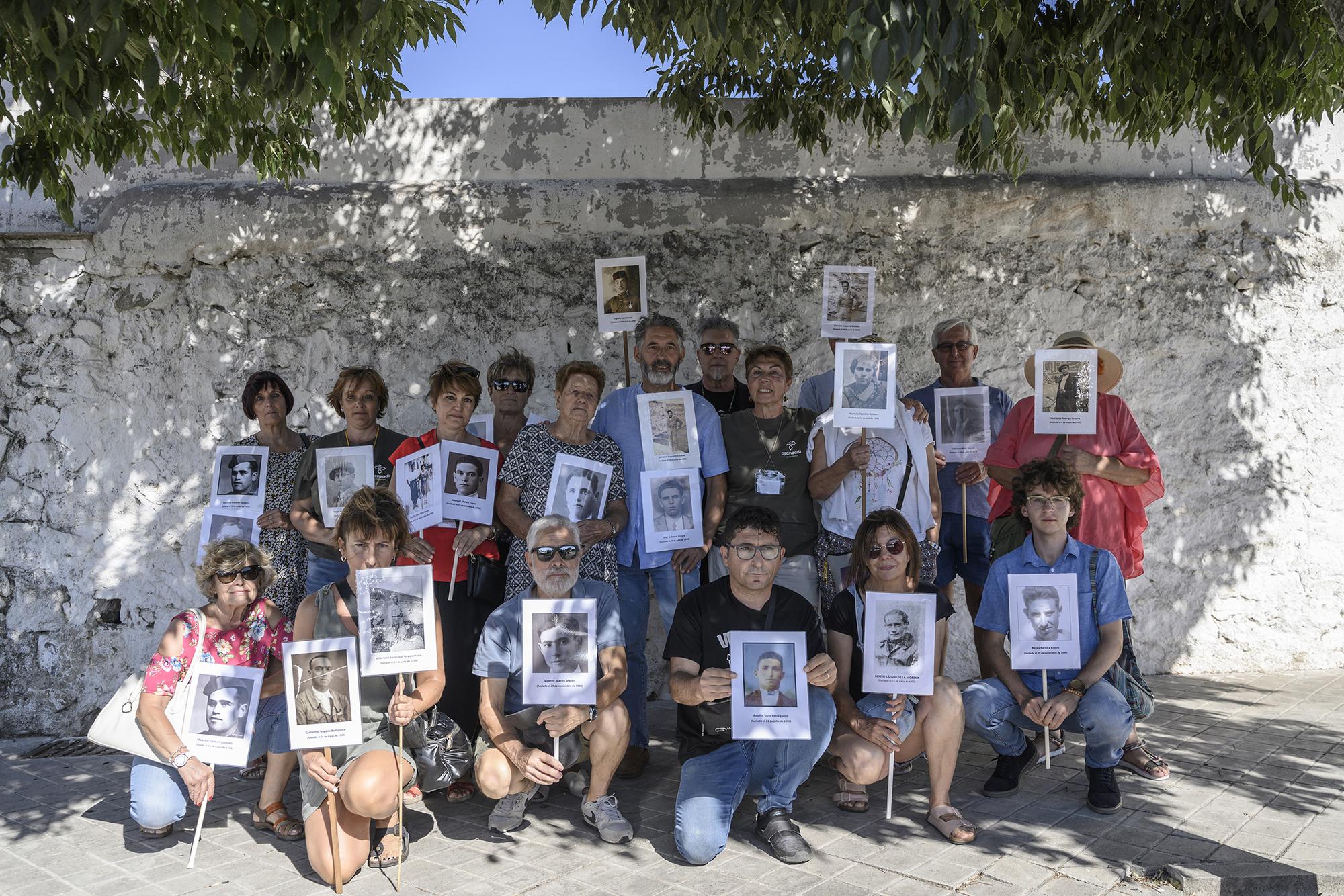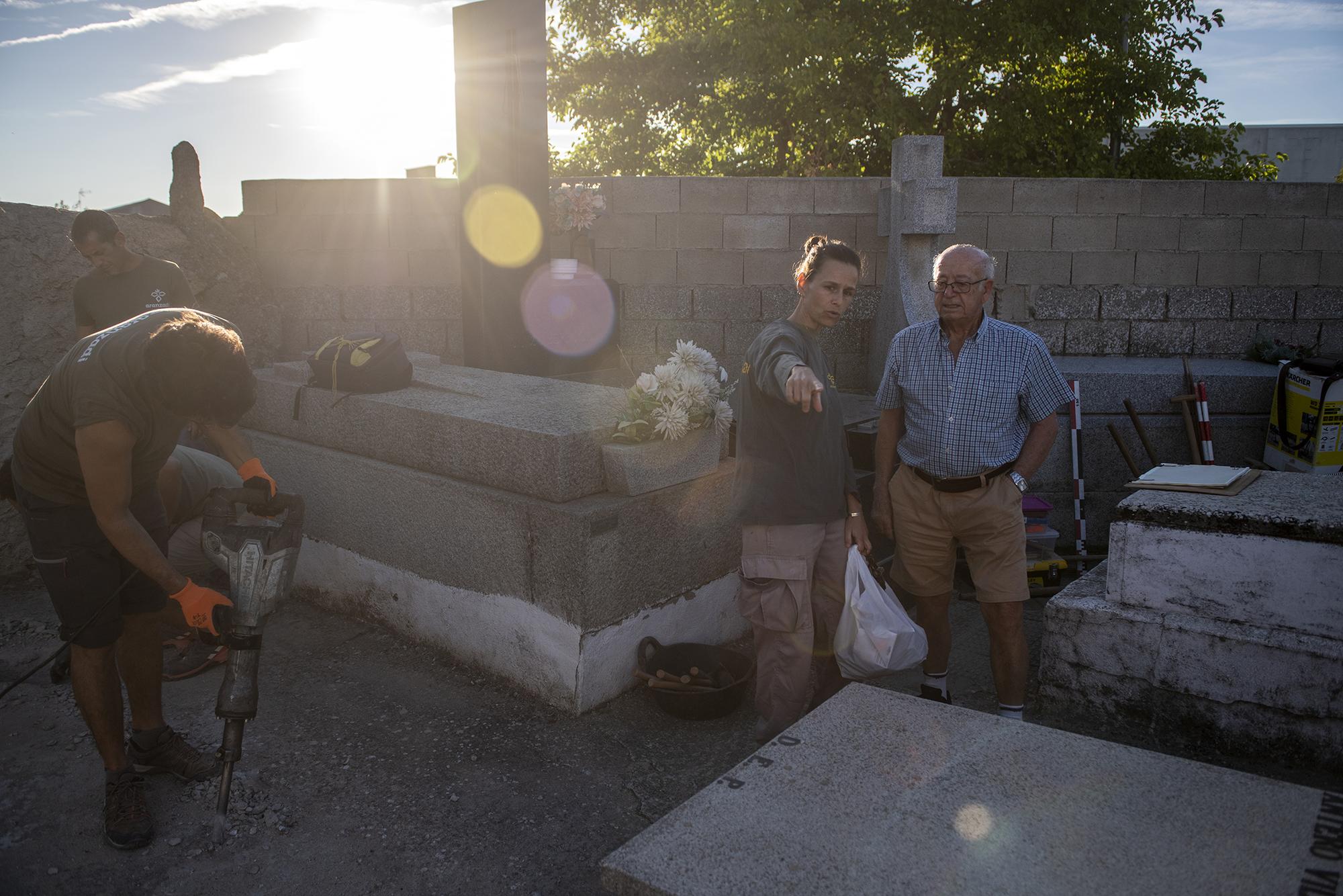 Son muchos los parientes de quienes fueron fusilados en el cementerio los que están presentes este miércoles de finales de agosto. Una treintena. Están nerviosos y portan los retratos de sus familiares con su nombre y fecha de fallecimiento. Benito Lázaro de la Morena, fusilado el 19 de junio de 1939. Isidoro Marivela Paredes, fusilado el 15 de abril de 1939. El abuelo de Gema, Facundo Navacerrada López, es uno de ellos. Sus restos se encuentran, según todos los indicios, en una de las fosas. Aunque quien conoce mejor la historia es Benita, madre de Gema e hija de Facundo. A sus 90 años, es la mayor del grupo, y por ello es blanco de objetivos y micrófonos, aunque también de una ración extra de afecto.