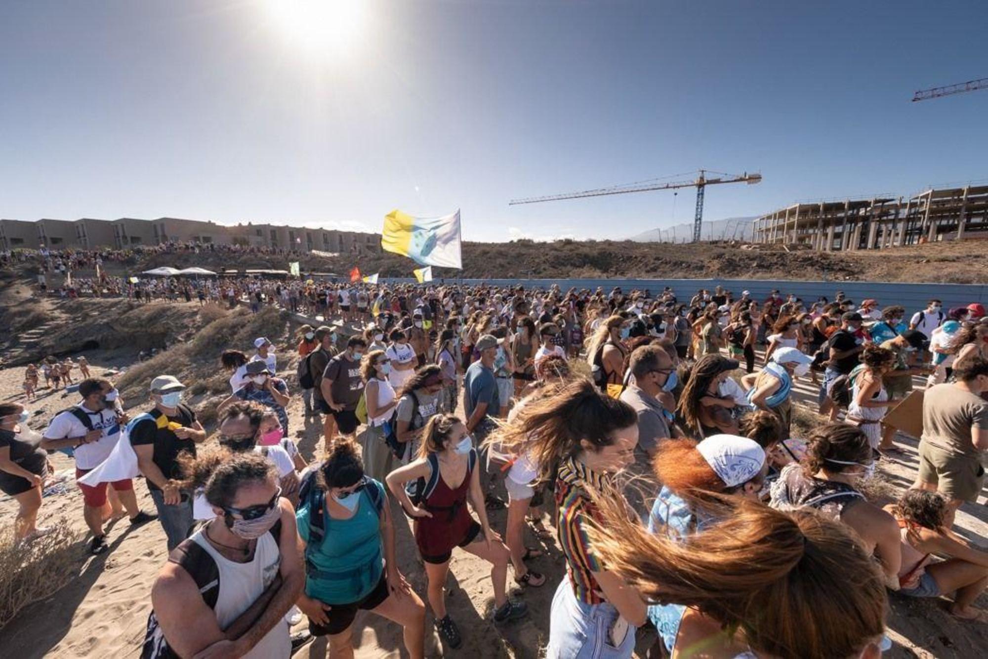 Igual de esenciales fueron el resto de movilizaciones, en las que se lograron objetivos parecidos gracias a la numerosa movilización popular. Al campamento llegaban imágenes de concentraciones en apoyo desde todas las Islas Canarias, también desde otros lugares de Tenerife. Pocas cosas más bonitas hay que recibir muestras de solidaridad desde otros lugares; que no quepa duda de que serán devueltas. Todo granito de arena aportado fue vital para salvar la playa.