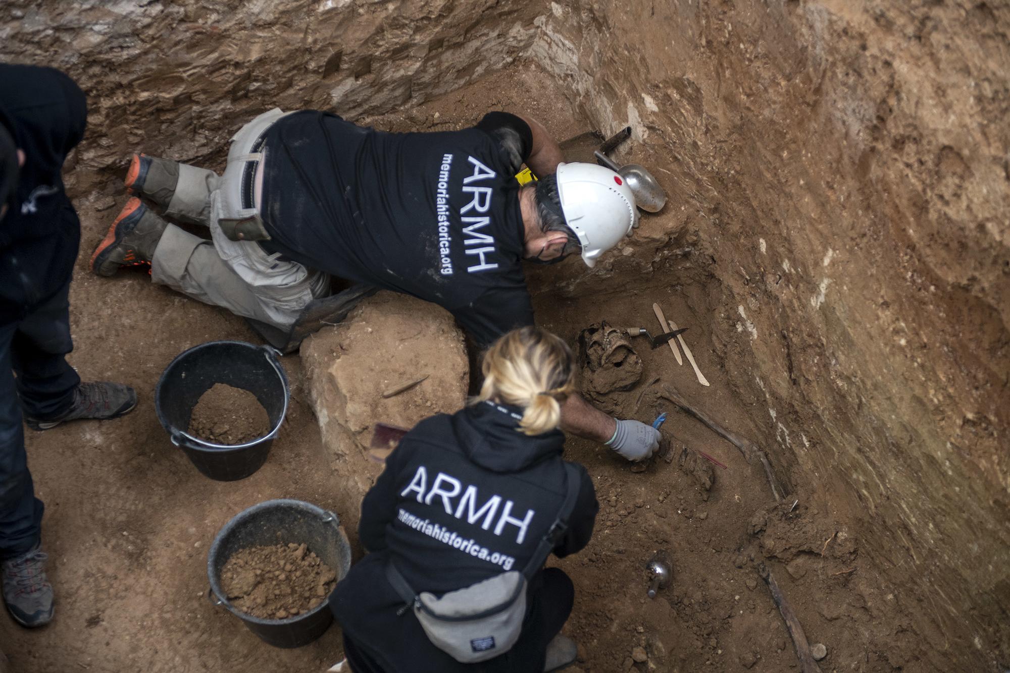 Llevan más de una semana desenterrando a pico y pala el silencio de la represión franquista en el cementerio de Guadalajara. A varios metros de profundidad, con las caricias de un pincel retiran la tierra, devolviendo la memoria y la dignidad de los hombres asesinados y arrojados a la fosa común número 3 junto a la tapia del cementerio.