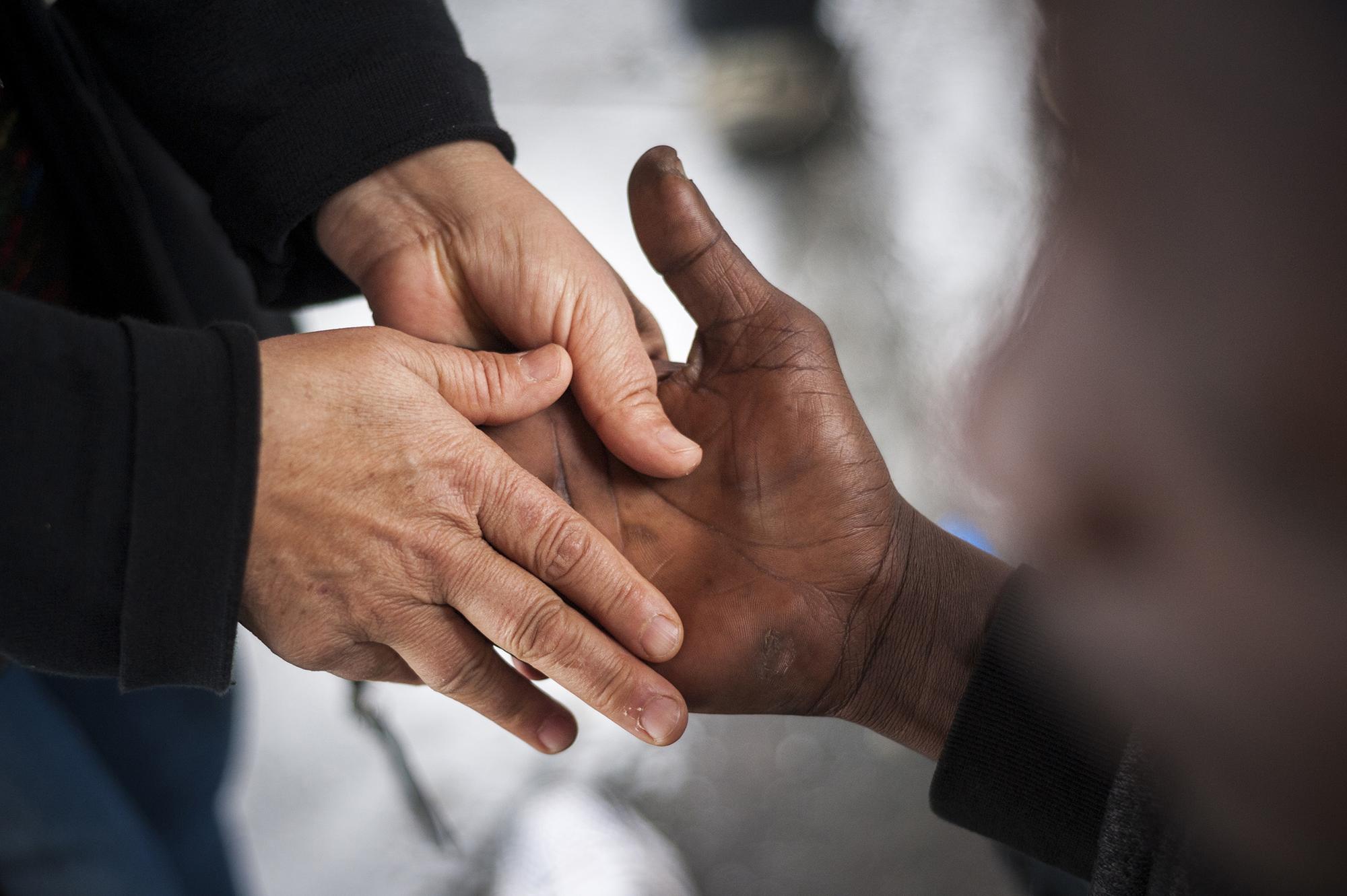 Cada noche, la Red de Acogida está pendiente de la llegada de migrantes en tránsito. “Casi todos llegan en autobús, es más barato que el tren”, resume Aranguren. Un gran cartel escrito en varias lenguas explica a la salida de las estaciones que siguiendo las huellas marcadas en las aceras, a 1.200 metros encontrarán el dispositivo gestionado por la Cruz Roja, donde hay comida, cama y servicio sanitario. A 900 metros, en la plaza del Ayuntamiento, hallarán el punto de encuentro que cada día a las diez de la mañana ofrece la Red de Acogida. Pueden usar teléfonos, cambiarse de ropa y recibir información.