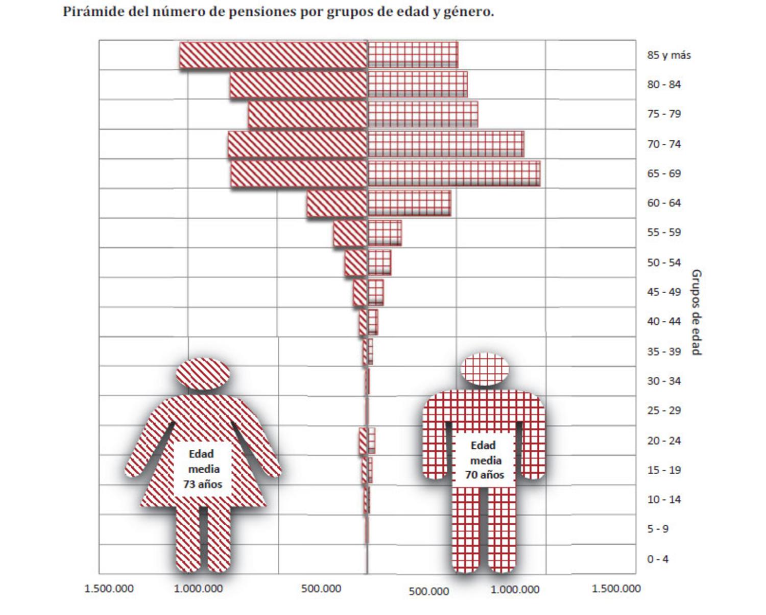Muy significativa es la diferencia en el importe de la pensión media que reciben hombres y mujeres. La de los hombres alcanza 1.140,37 euros mientras que las mujeres perciben 718,23 euros. La diferencia más notable se encuentra en la pensión por jubilación, que tiene una media de 1.236,34 euros en el caso de los hombres y de 785,18 en las mujeres.