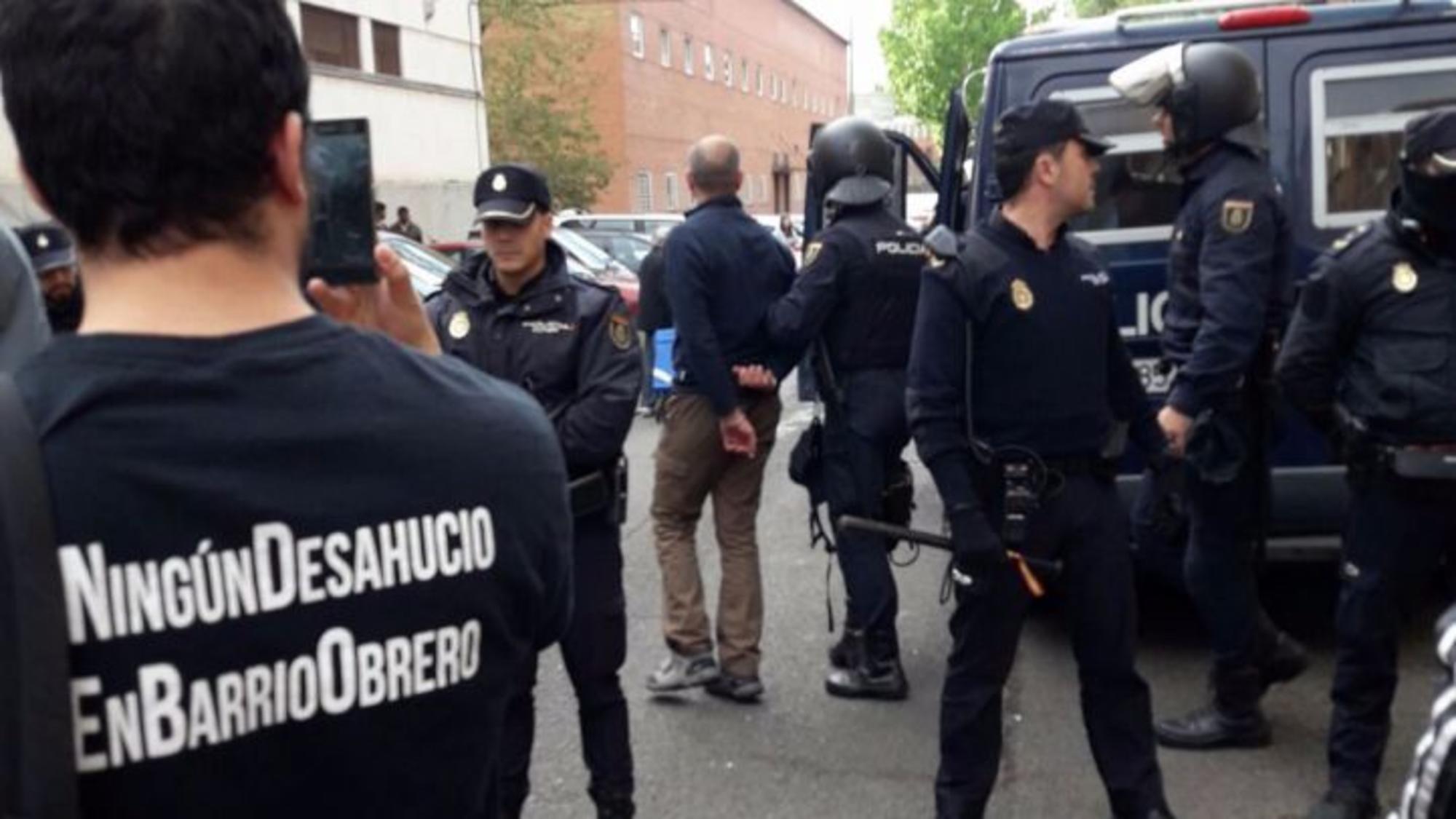 Según relata Aranda, durante el stopdesahucios todo fue tranquilo hasta la llegada de la comisión judicial, cuando, durante una discusión verbal entre un policía y otro activista que se encontraba a su lado, “en un determinado momento el policía salió del perímetro y lo agarró, y también me detuvieron a mí”. “La detención fue bastante violenta, a Fernando [el otro activista detenido] lo golpearon”, indica Aranda. Aunque ambos fueron liberados horas más tarde, la mañana de aquel día finalizó también con la ejecución del desahucio de la familia a la que habían ido a apoyar, que ocupaba una vivienda de Bankia y que no disponía de alternativa habitacional.