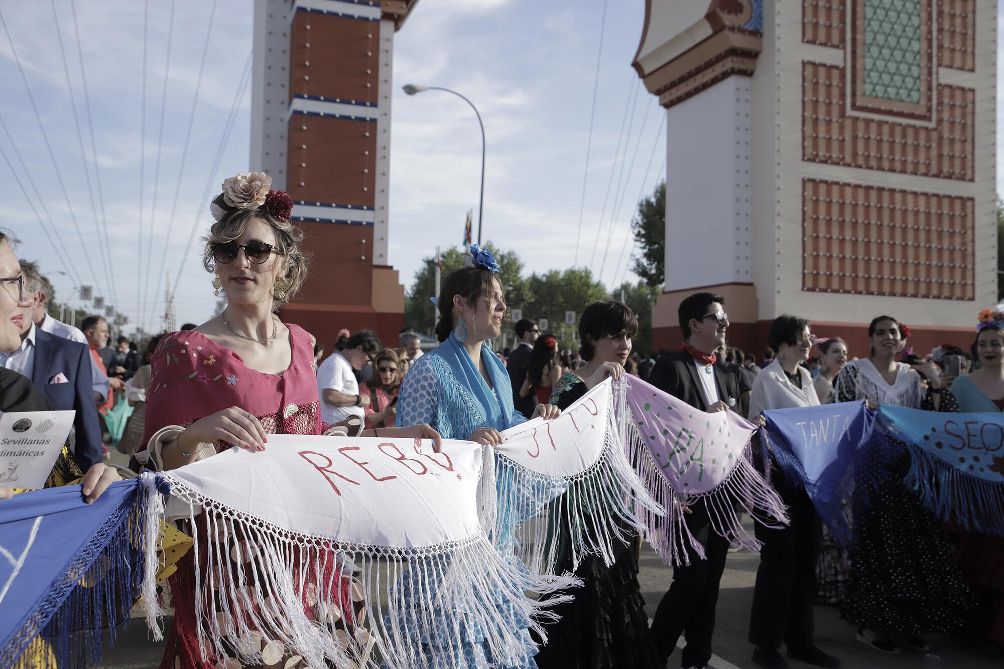 Las temperaturas son más altas que nunca, la sequía se extiende por el territorio y la Junta de Andalucía gestiona de manera cuestionable el agua, como muestra el caso de Doñana. Esto pretendía ayer denunciar Juventud por el Clima Sevilla, y lo hizo ayer en la feria de abril con una performance flamenca a cargo de la peña femiista Las Asarvahás, responsables de materializar con su arte, las “sevillanas climáticas”, que el colectivo ecologista ha compuesto para la ocasión.