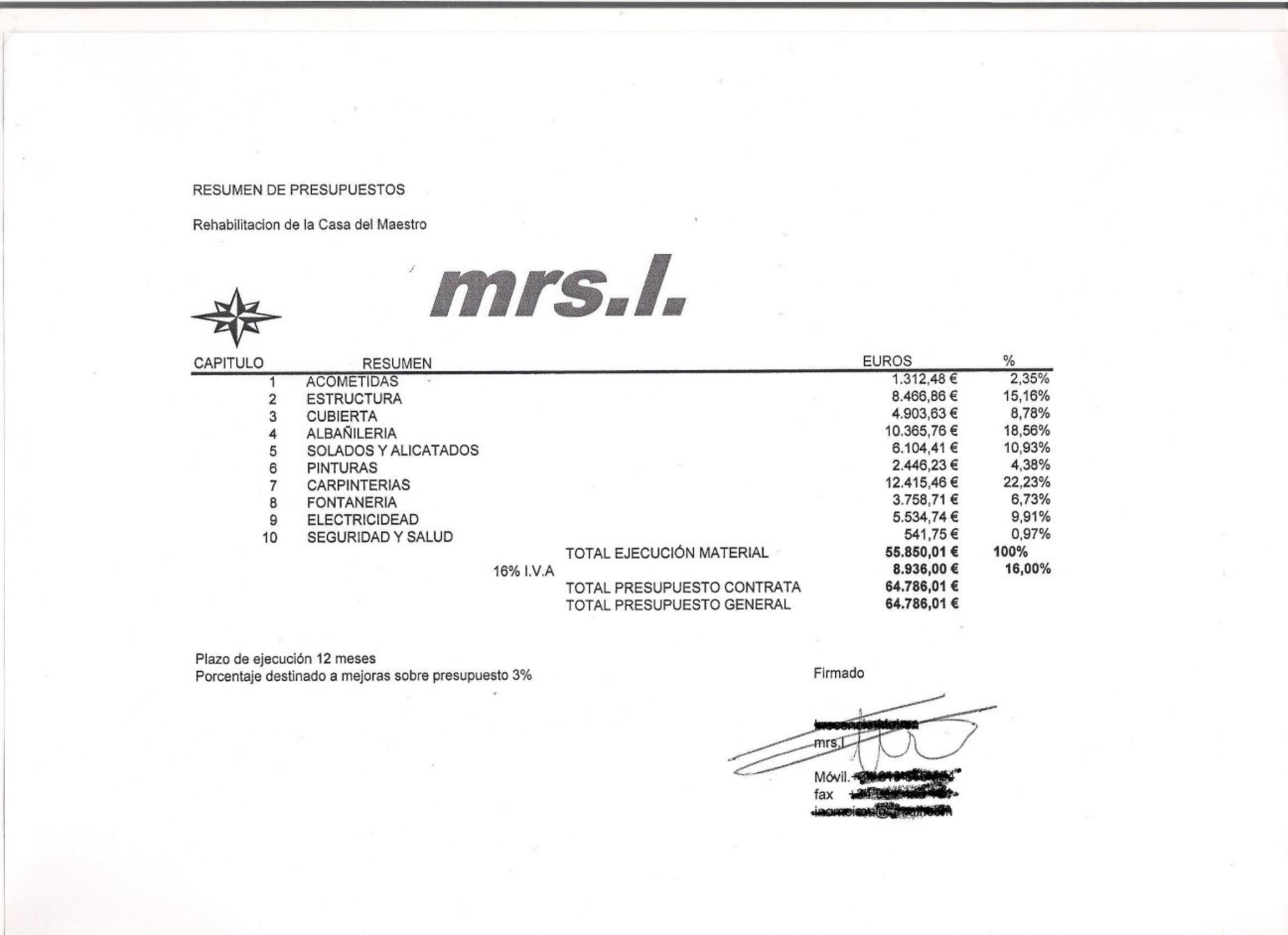 O contrato foi adxudicado a Corfranco, que comparte domicilio e teléfono con Promociones Mahyllely, da que o propio Enrique Calvete figuraba como administrador.