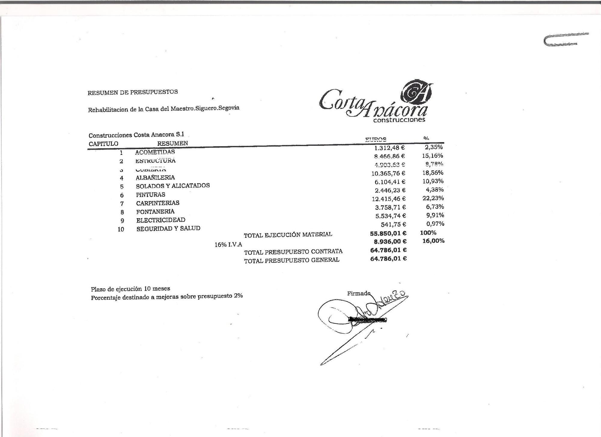 Resulta desconcertante que as tres plicas de contratación coinciden ata nos céntimos tanto no presuposto total como no segregado nas partidas destinadas ós diferentes gastos da obra, unha coincidencia dificilmente explicable se non foron feitas as tres pola mesma persoa.
