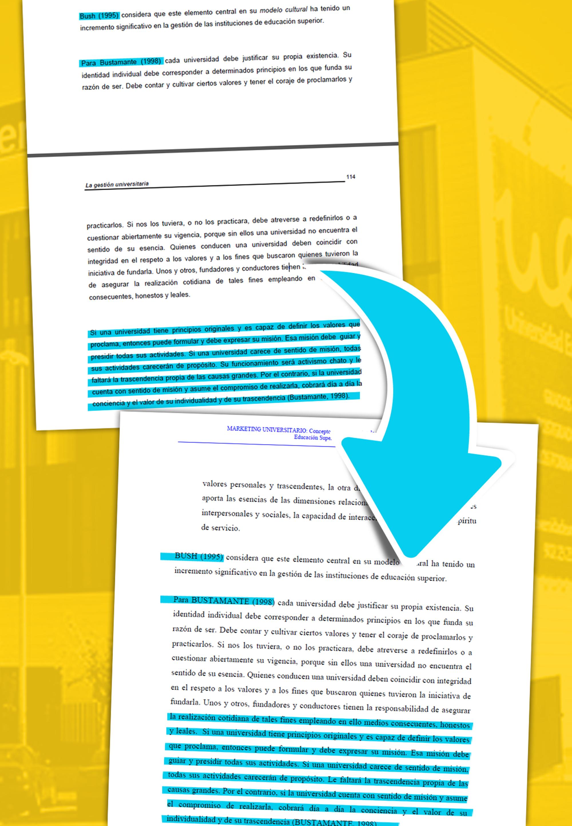 En concreto, tras hacer referencia al trabajo de Mindreau, Carmelo copió de su tesis casi en su totalidad, y sin entrecomillar más allá de las citas también empleadas por Mindreau, 30 de las cuarenta páginas dedicadas al capítulo sobre “Organización universitaria” —desde la 167 hasta la 197—. Las diferencias entre las dos tesis en estas páginas se limitan a algunos pocos casos de cambio de posición de unas pocas palabras, puntos y seguidos convertidos en puntos y aparte, un título de apartado ligeramente españolizado —de “el mejoramiento continuo” pasa a “la mejora continua”— o la eliminación de algunos párrafos —como pasa en la página 174 de la tesis de Carmelo, equivalente a las páginas 26 y 27 de la de Mindreau—.
