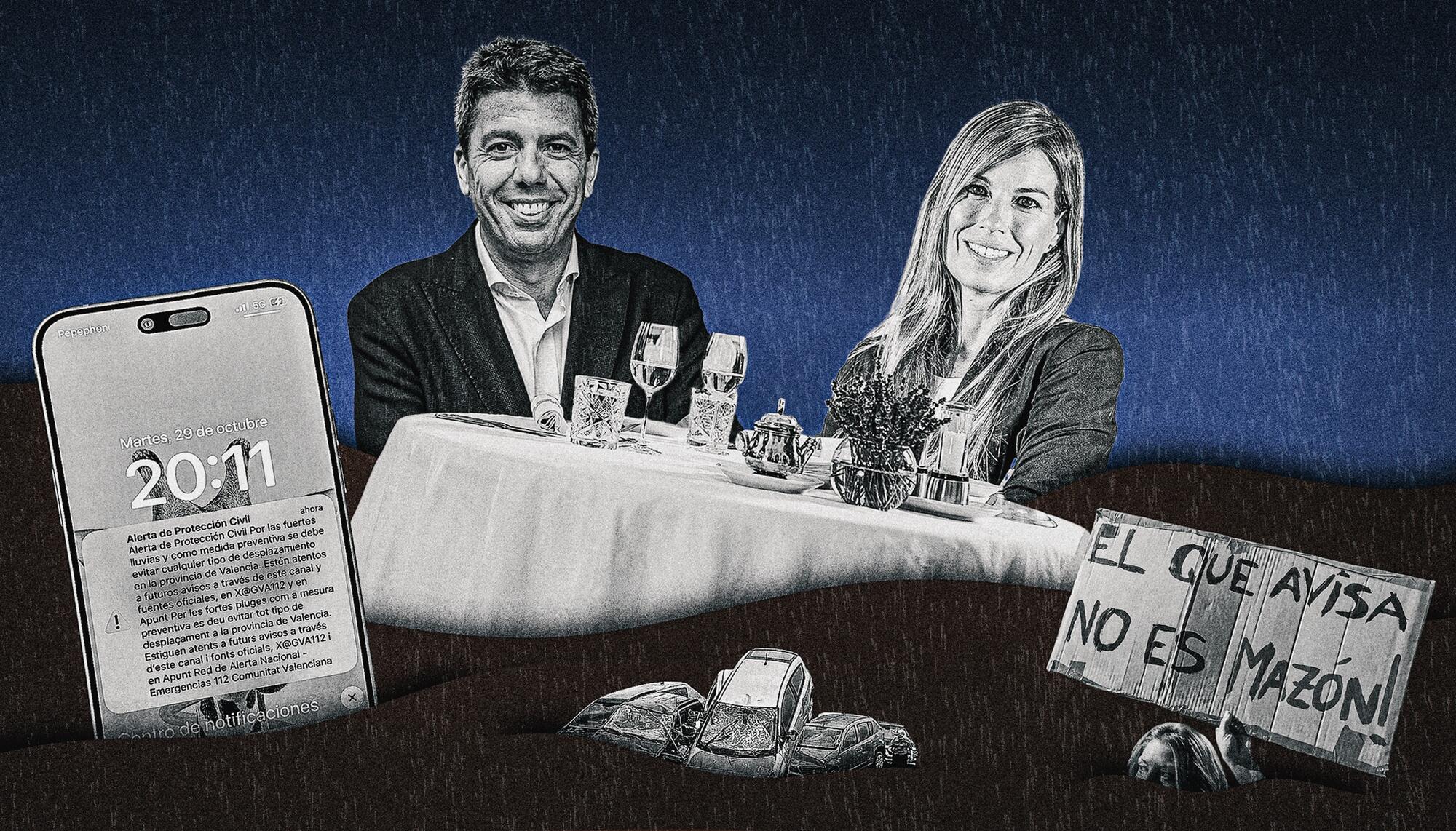 La segunda semana de la tragedia es cuando Mazón empieza a jugar a la “luz de gas”. Es cuando se hace público que el día de los hechos pasó cinco horas en una larga comida y sobremesa. En una primera versión su equipo afirma que era una comida de trabajo. Después, que era un almuerzo privado, pero que estuvo en permanente contacto con el Cecopi y su consellera de interior, Salomé Pradas. Un extremo que otras informaciones posteriores desmintieron, ya que, a su llegada al Cecopi, pasadas las siete de la tarde, los técnicos tuvieron que emplear tiempo en explicarle la situación.