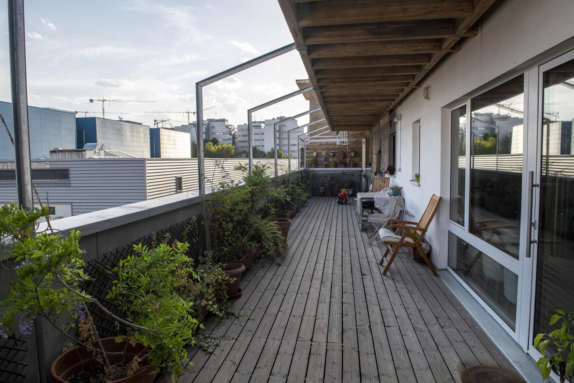 Martín Cúneo vive en Entrepatios junto a su compañera Emma Gascó y su hijo Max, de tres años. Recuerda que, precisamente, la ubicación de los espacios comunes fue uno de los temas que generó más debate. “Teníamos que decidir entre situarlos en la planta baja o en la azotea, y al final se hizo una mezcla y fue una sabia elección”. La planta baja es ahora un espacio comunitario que se destina al trabajo de reparto de alimentos del grupo de consumo y para que jueguen los niños. La azotea “se utiliza más para ocio de adultos”, señala.