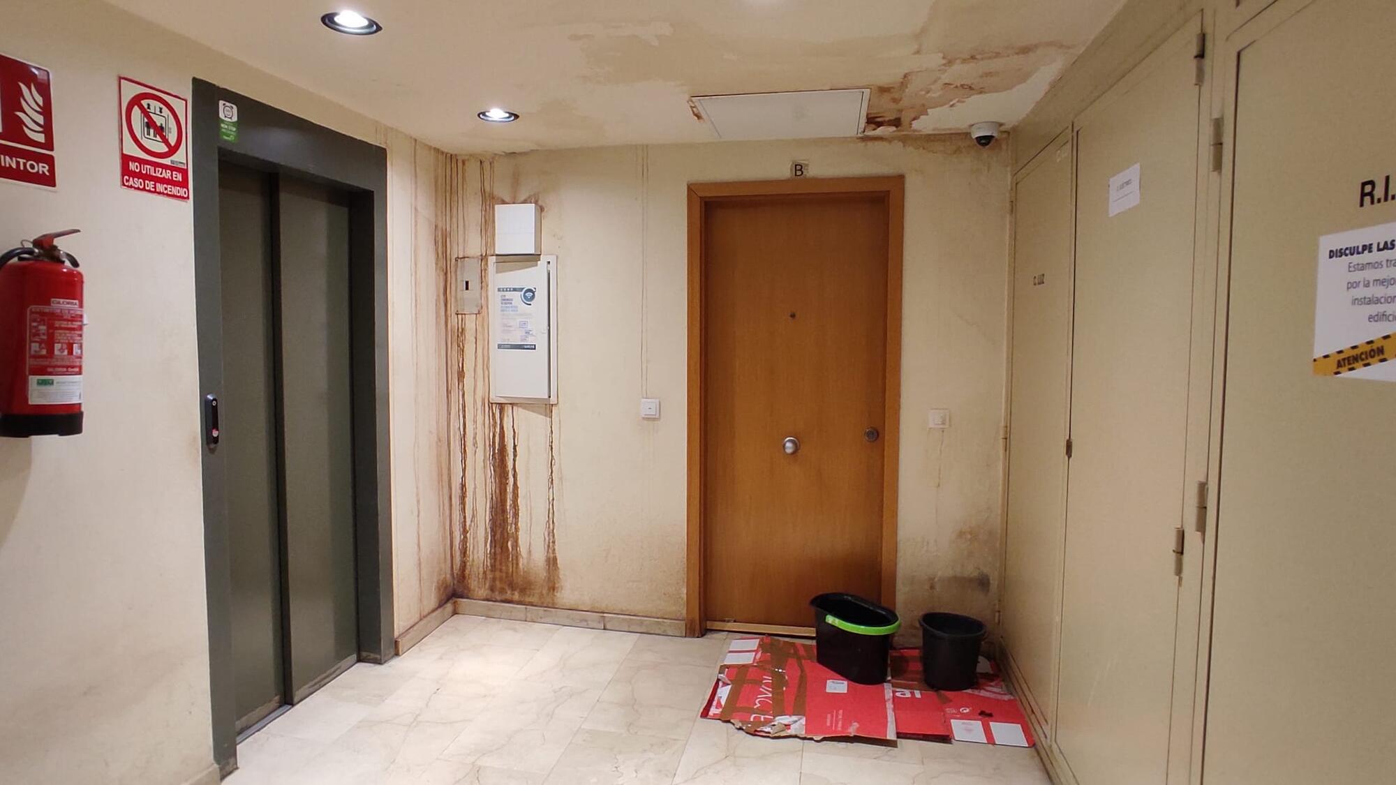 “Eran los pisos piloto, los últimos en alquilarse. Ahora, de tres bombas de agua solo funciona una, y estamos en peligro de quedarnos también sin agua porque no aguanta más. Todo el agua que regresa de las calderas de las más de 200 viviendas, cae por mi techo, incluso al cuadro de luces”, denuncia Joao, quien vive en la puerta de enfrente de Eliana.